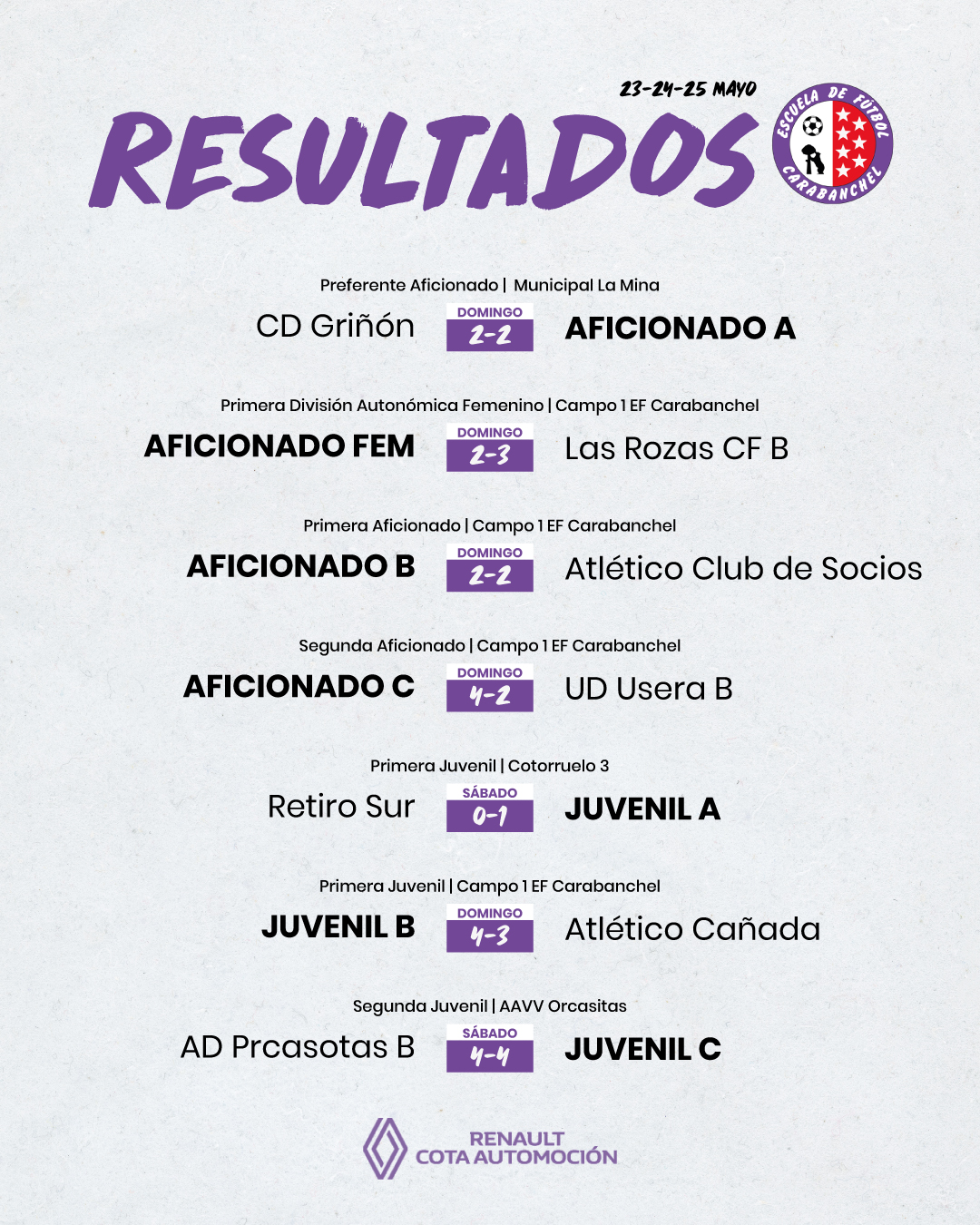 Resultados Jornada 23-24-25 Mayo