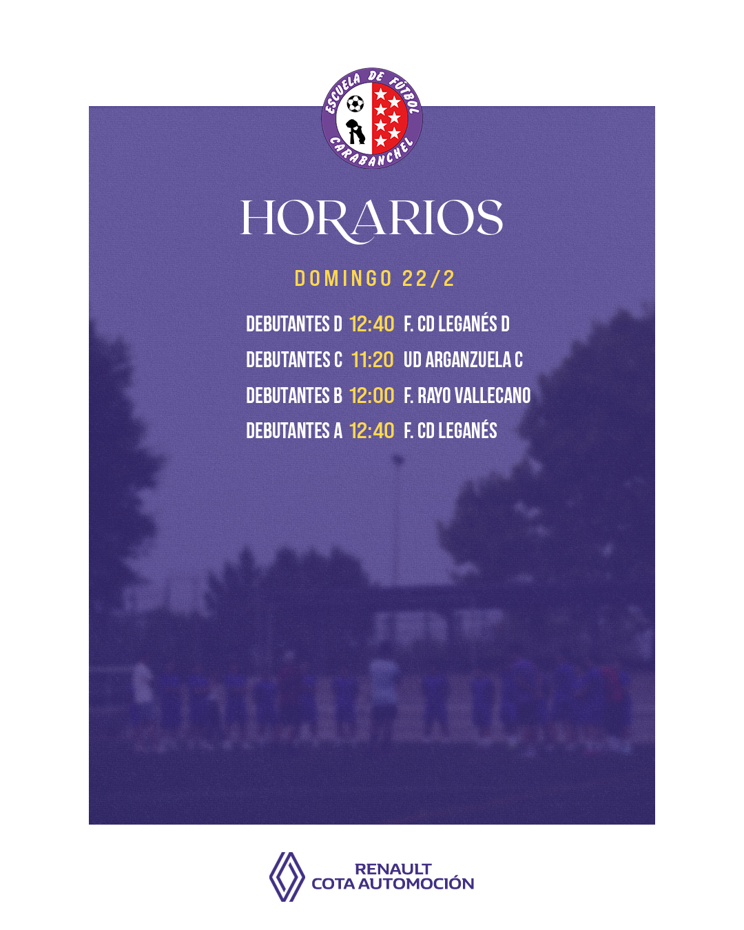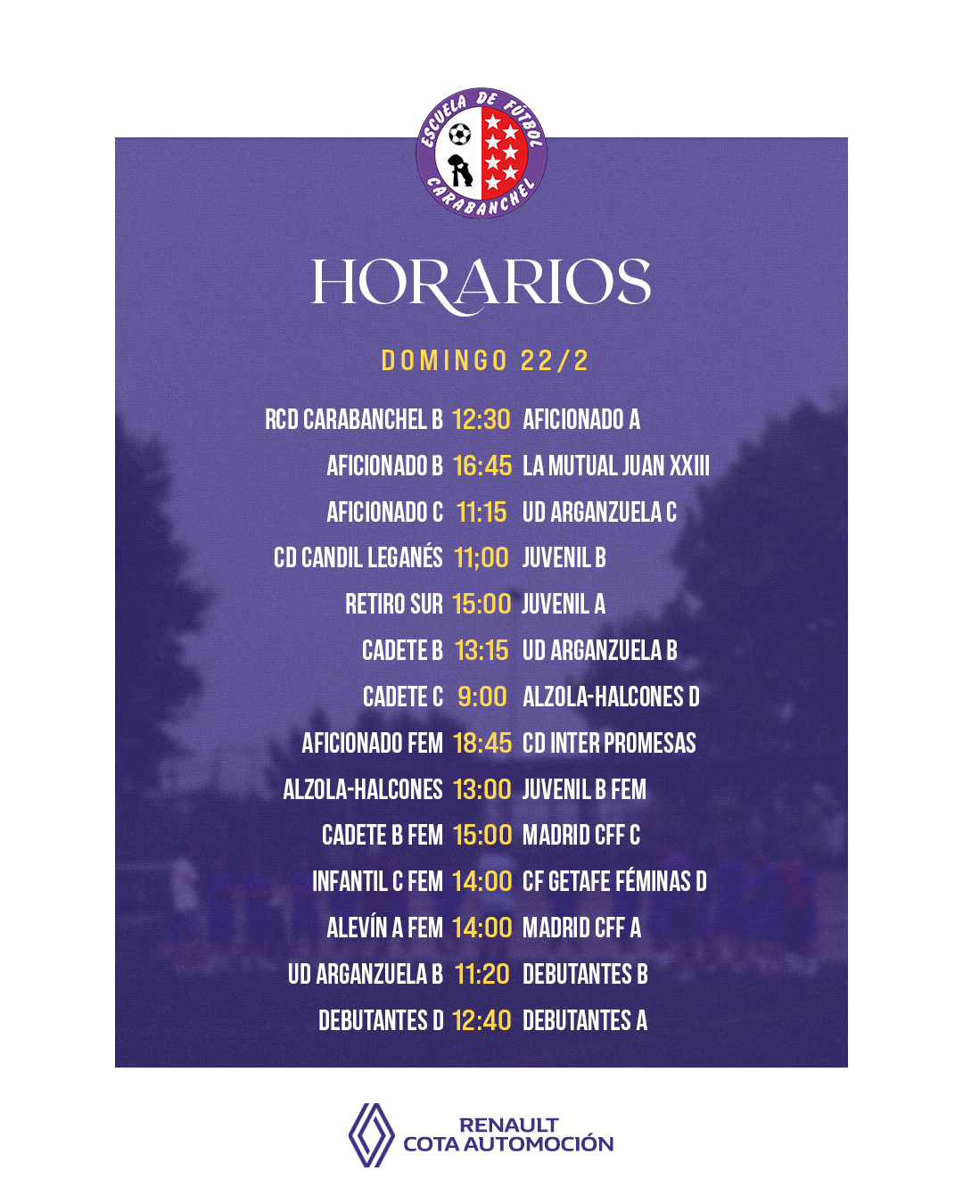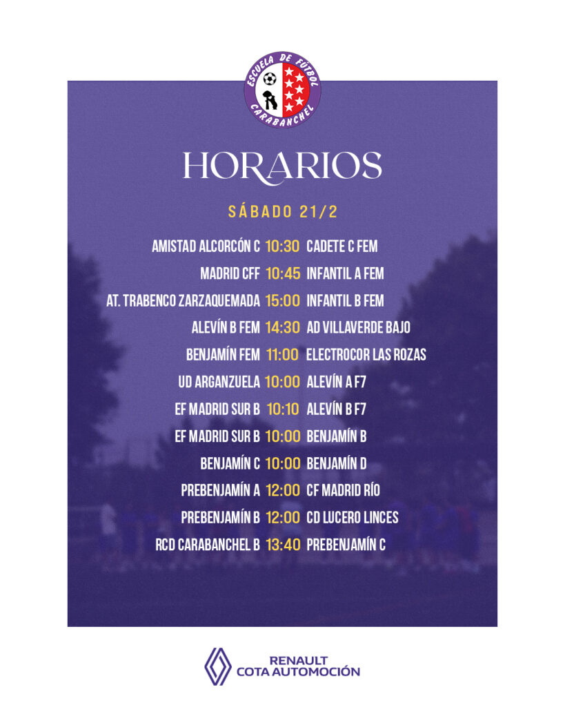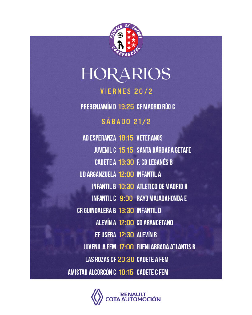 Los horarios de los partidos de todos nuestros equipos.
